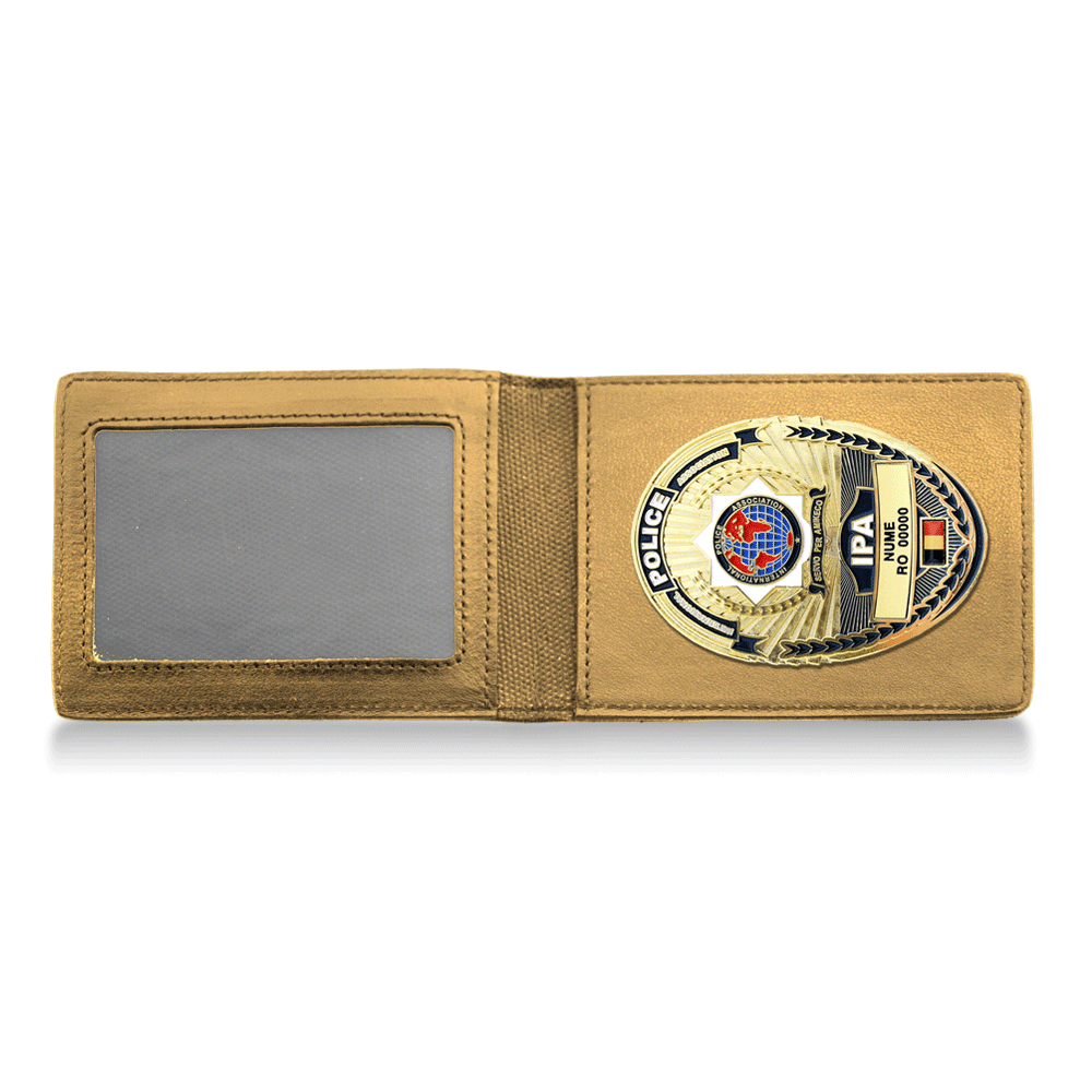 PORTLEGITIMAȚIE1 COGNAC cu insignă Ovală Aurie (cu steag)