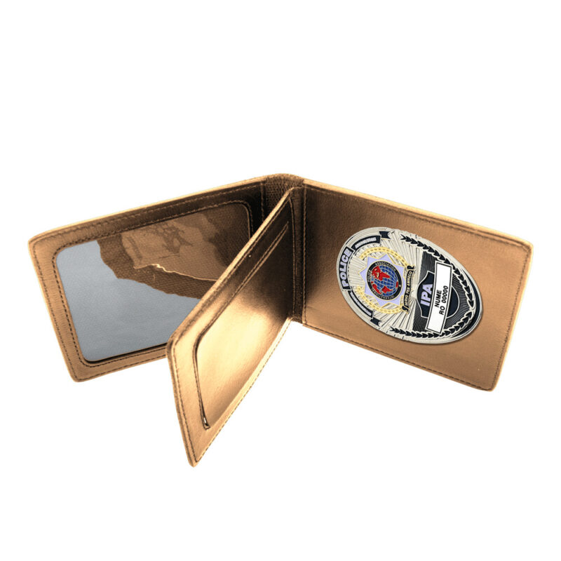 PORTLEGITIMAȚIE2 COGNAC cu insignă Ovală Argintie