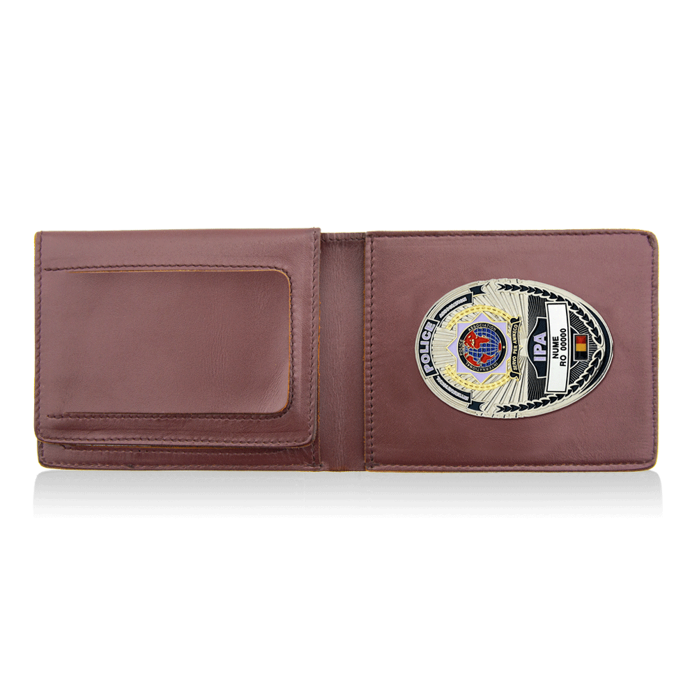 Suport din piele cu insignă ovală aurie (cu steag)