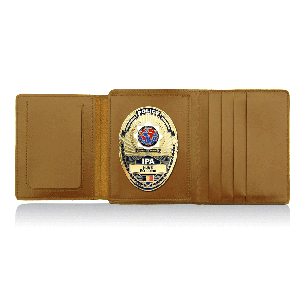 • Suport din piele cu insignă ovală aurie (cu steag) Read more