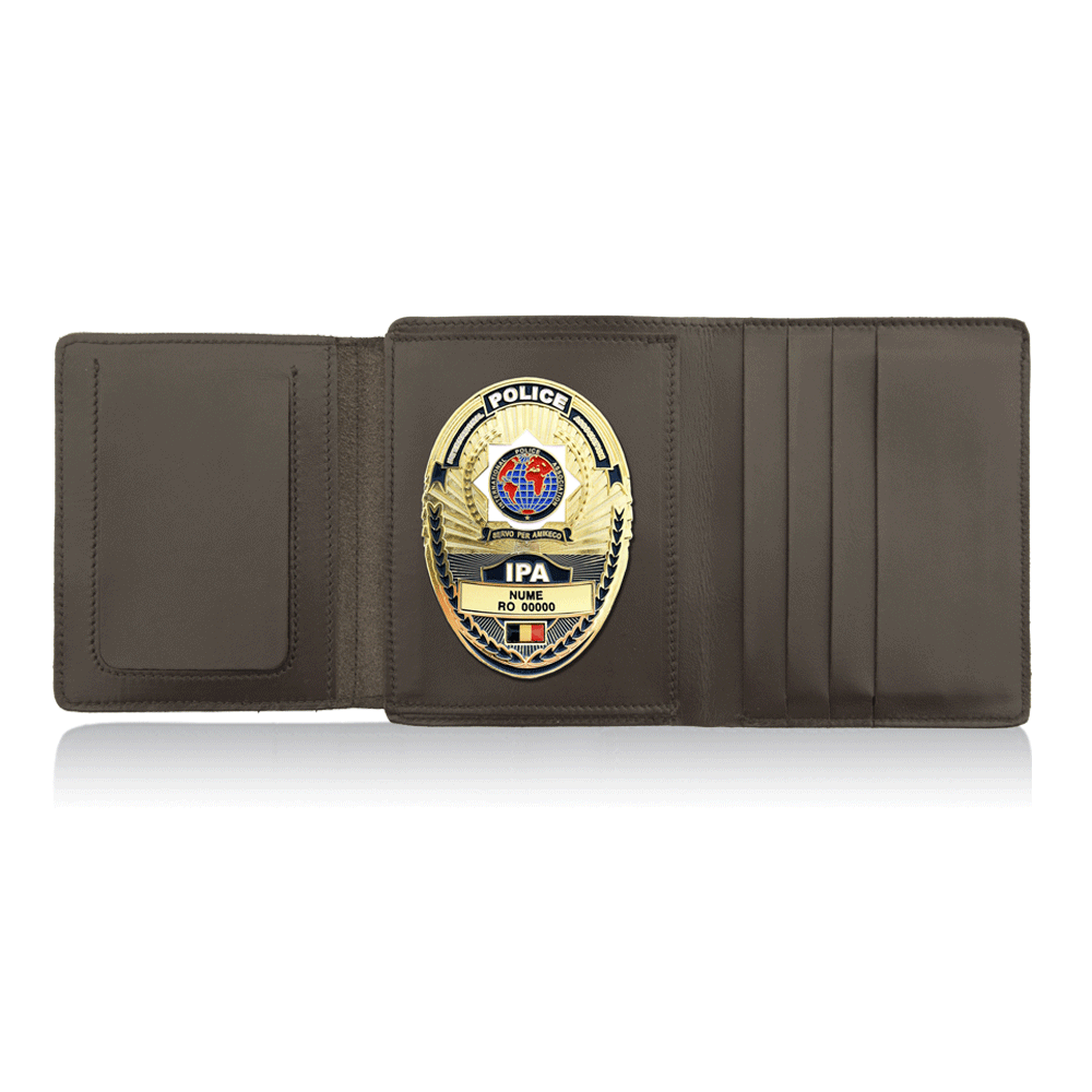 Suport din piele cu insignă ovală aurie