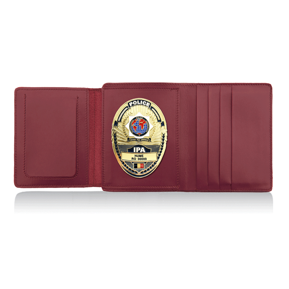 • Suport din piele cu insignă ovală argintie (cu steag) Read more