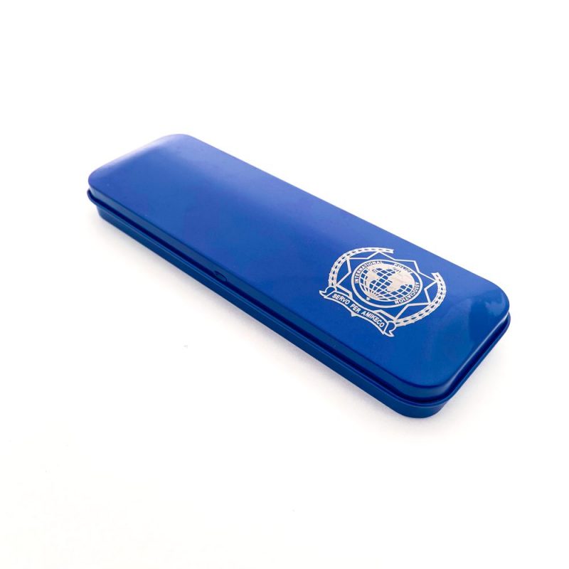 Pix și creion mecanic( cu mină 0,7 mm) din aluminiu în cutie metalică. Mină albastră.